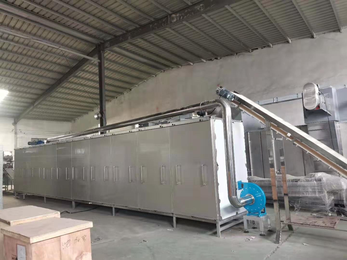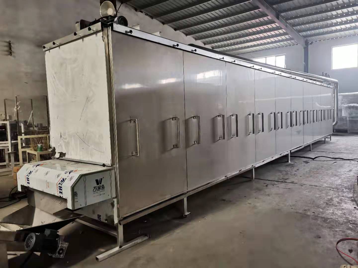 7、多層烤箱:烤箱多為電烤箱,溫度在0-200度之間通過控制柜自行調(diào)節(jié),內(nèi)部為不銹鋼雙層網(wǎng)袋,烘烤時間可以根據(jù)速度調(diào)節(jié),通過烘烤使得主料與芯料在一定程度上滲透,增加口感,同時減少物料水分,增加保質(zhì)期。