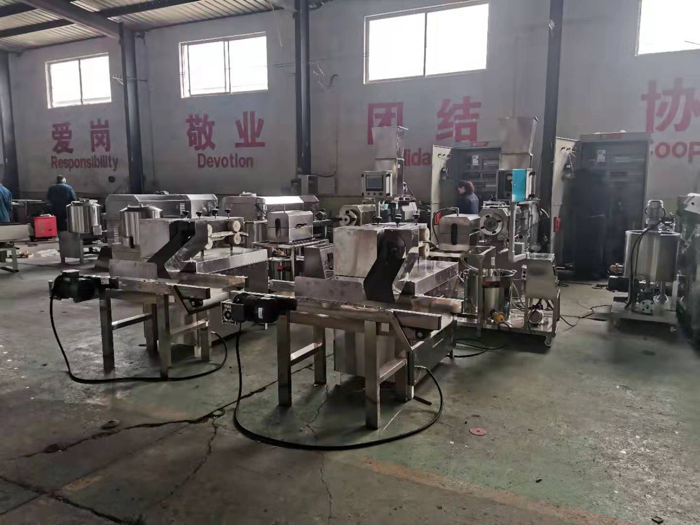 3、膨化機:根據(jù)生產(chǎn)線產(chǎn)量的不同選用不同型號的CY65型雙螺桿膨化主機,產(chǎn)量可從100kg/h--300kg/h不等,原料可以玉米粉、米粉、面粉、谷粉等為原料。