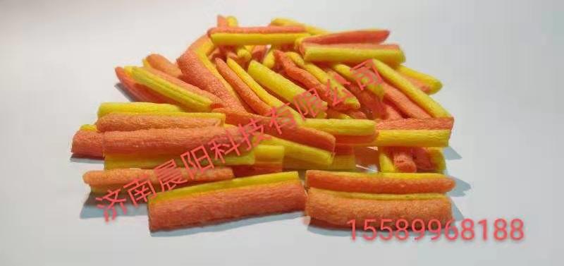 濟南晨陽科技有限公司是一家專業(yè)以擠壓膨化為主的企業(yè),有20余年的產品生產經驗,公司根據市場需求也在不斷探索,最新開發(fā)出油炸膨化食品雙色產品,夾心米果狼牙棒,并把產品帶去104屆春季糖酒會分享大家鑒賞,和工藝探索。