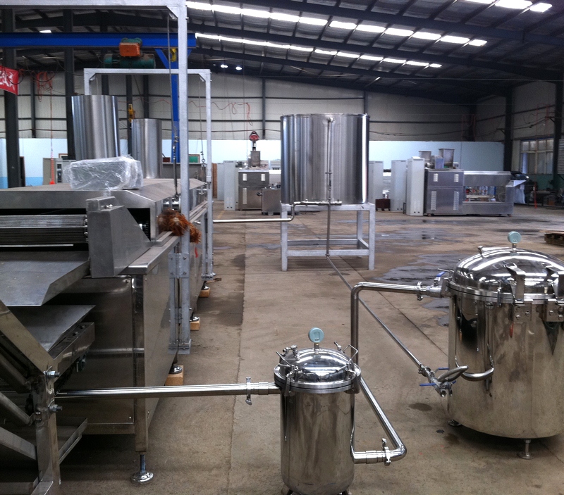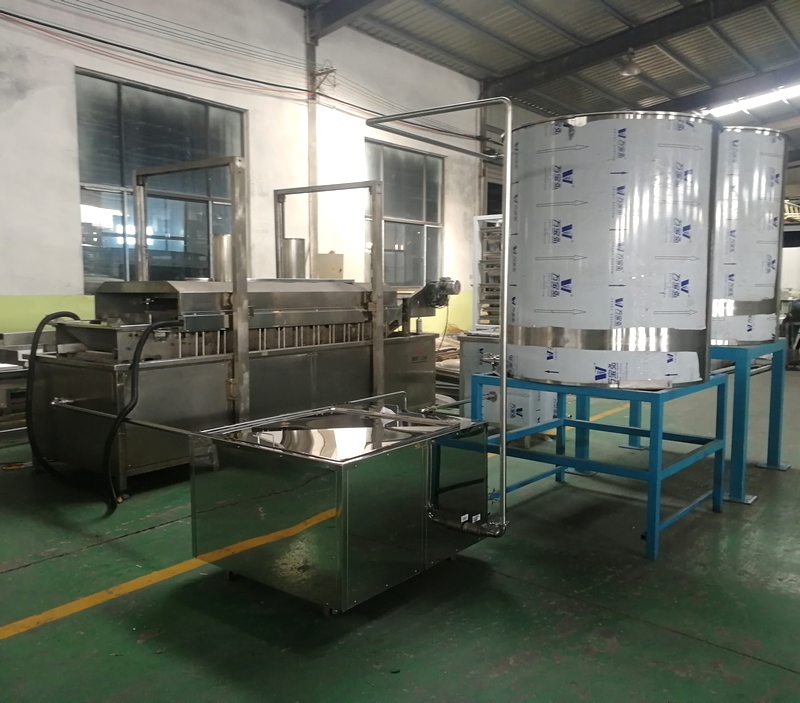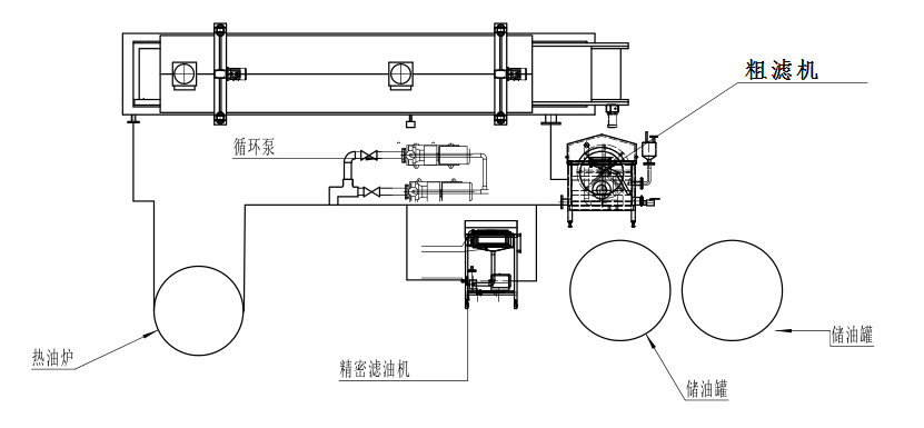 油炸機組成:隧道式油炸機、粗濾機、精濾機、循環(huán)油泵、儲油罐2臺、外置加熱器(燃油、燃氣型配置)、控制部分組成。
