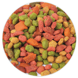 本生產(chǎn)線改變生產(chǎn)工藝流程可以生產(chǎn)寵物食品狗糧、貓糧、魚飼料等產(chǎn)品。鮮肉添加比例可以達(dá)到30%,滿足動(dòng)物對(duì)蛋白的營(yíng)養(yǎng)需求。膨化機(jī)可以選用干法膨化和濕法膨化;烘干機(jī)可以根據(jù)電、燃?xì)狻⒄羝茉词褂煤侠碓O(shè)計(jì);調(diào)味設(shè)備有單滾筒,雙滾筒連續(xù)調(diào)味機(jī),單頭自動(dòng)稱重八角調(diào)味機(jī)、雙頭八角自動(dòng)調(diào)味機(jī)、滾筒式批次稱重調(diào)味機(jī)等。