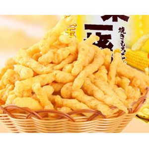 奇多是一種特殊的擠壓膨化型小食品,玉米糝進入旋轉頭擠壓機中,在擠壓機兩個轉盤的 擠壓與揉搓作用下,玉米糝形成不規(guī)則的扭曲形狀,然后切刀將其切成所需長度的產品。奇多可以油炸后調味,也可焙烤后調味,因 其美味而深受消費者歡迎。
